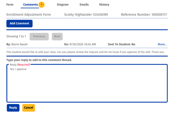 Your feedback to the comment will be reviewed by the Enrollment Manager,