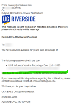 *You will receive an auto generated notification from noreply at ehsoh.ucr.edu