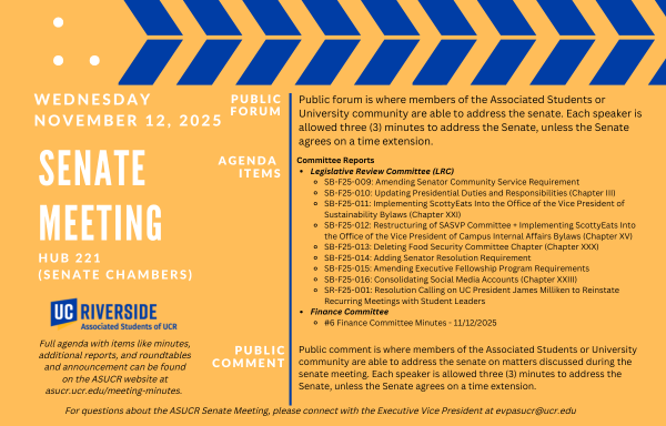*From the Office of Executive Vice President and ASUCR Senate*